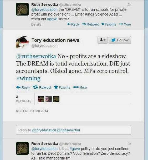 As an aside, here is what controversial Twitter account Tory Eduction News (for US readers, the Tories are the Conservative party in charge with a coalition becoming more right wing by the month) had to say recently: